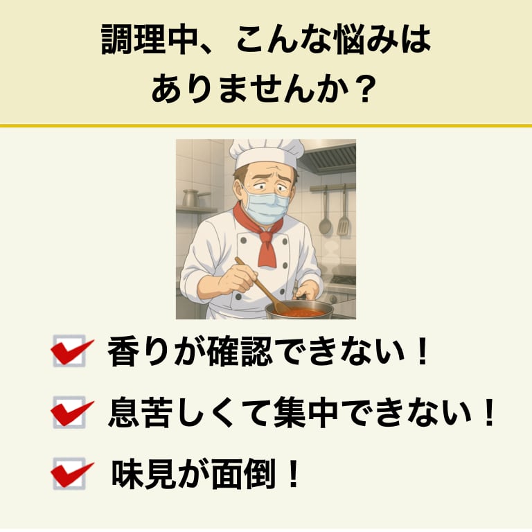 ◆マスクを着けての調理。こんな悩みはありませんか?
